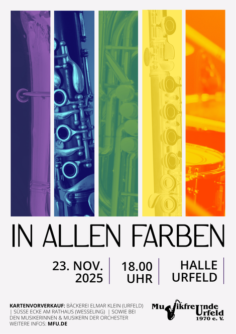 Das Jahreskonzert wird 2025 ein farbenprächtiges Erlebnis: Die Musikerinnen und Musiker des Hauptorchesters unter der Leitung von Martin Kirchharz sowie das Jugendorchester unter der Leitung von Ingo Baier laden herzlich ein zu einem Abend voller Nuancen und feiner Zwischentöne. Dabei geht es nicht nur um Farben im wörtlichen Sinn, sondern auch um die ganze Bandbreite an Klangfarben und musikalischen Stimmungen – mal kraftvoll und strahlend, mal sanft und zart gezeichnet. Ein Konzert, das die Vielfalt sinfonischer Blasmusik in all ihren leuchtenden Schattierungen feiert.